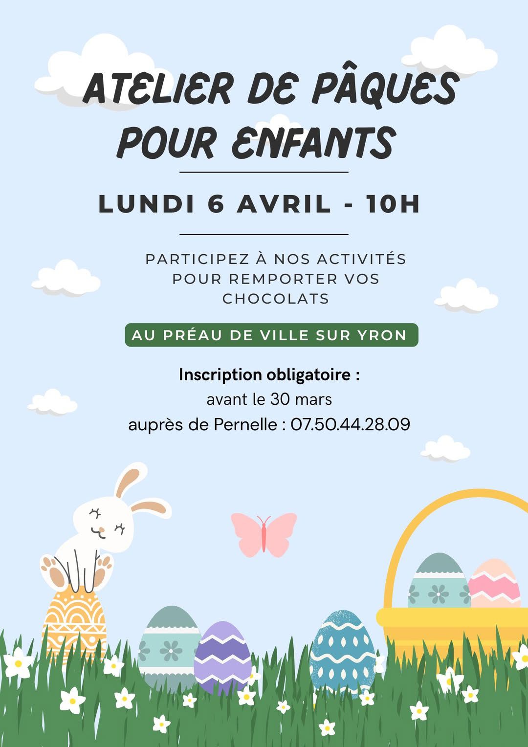 Lire la suite de l'articleAtelier de PÂQUES pour enfants Les cloches passent à Ville sur Yron… et elles ont...
