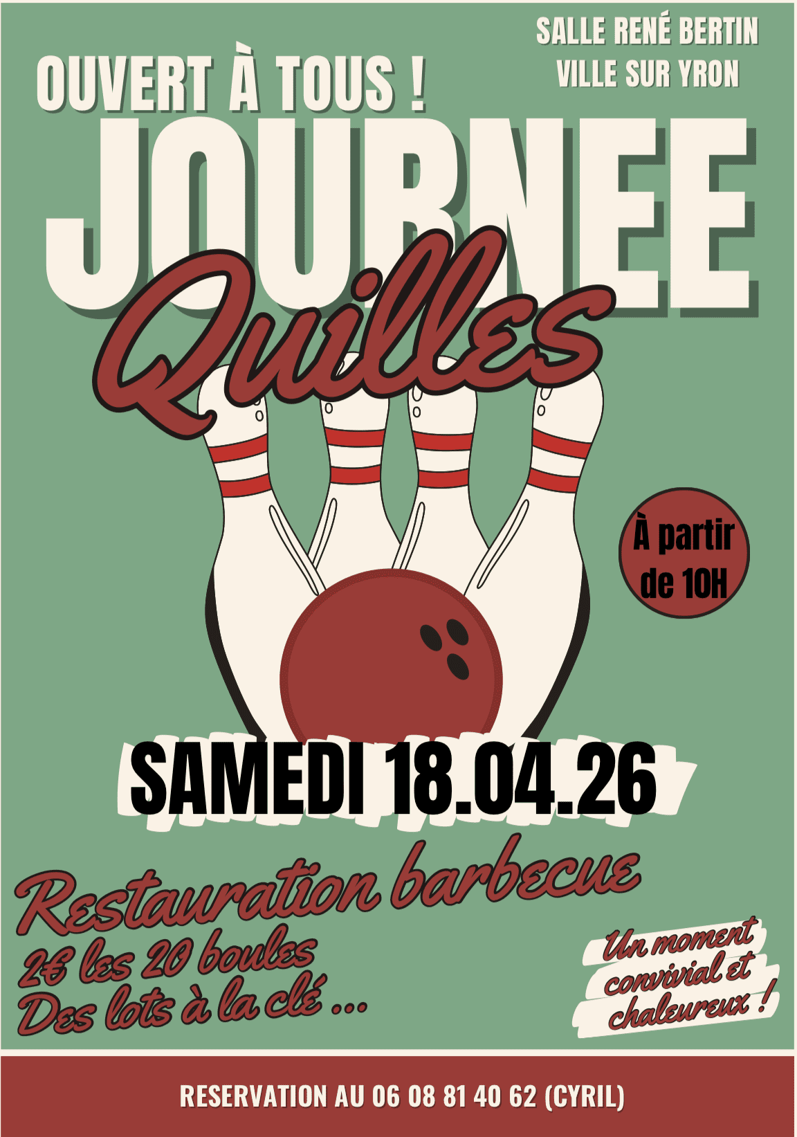 Lire la suite de l'article📣📣📣 Journée QUILLES 🎳 – Ouvert à tous ! 🎉 Envie de partager un moment...