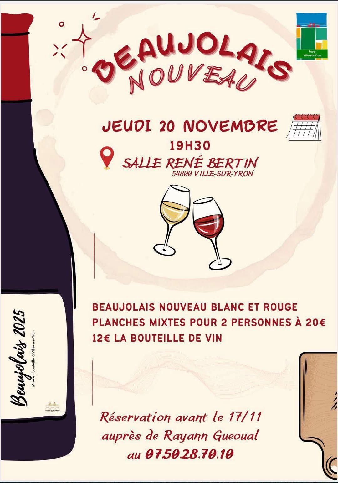 16 novembre 2025 Actualité générale‚ Le Foyer Commentaires désactivés vsy-mairie BEAUJOLAIS NOUVEAU, jeudi 20 novembre à 19H30 salle René Bertin Related Blog BEAUJOLAIS NOUVEAU, jeudi 20 novembre à 16 novembre 2025 LES RENDEZ-VOUS DU PRÉAU, le Café 15 novembre 2025 ATELIER CREATIF DE NOEL, samedi 22 15 novembre 2025