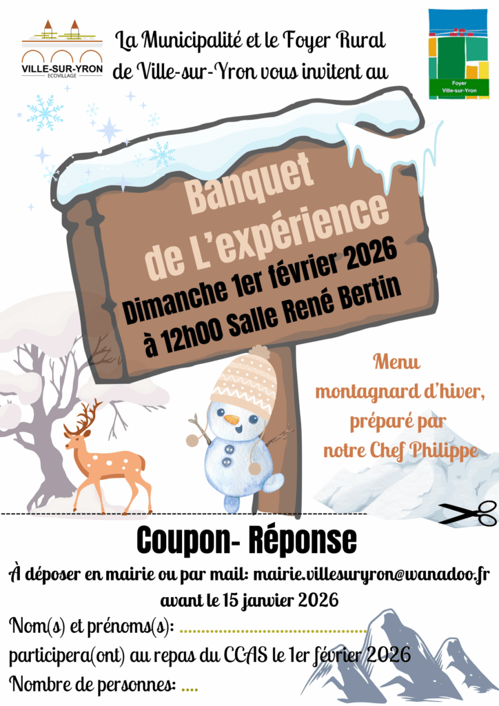 Le CCAS et le Foyer Rural invitent les habitants nés avant 1971 à un déjeuner convivial et festif sur le thème de la montagne en hiver.
